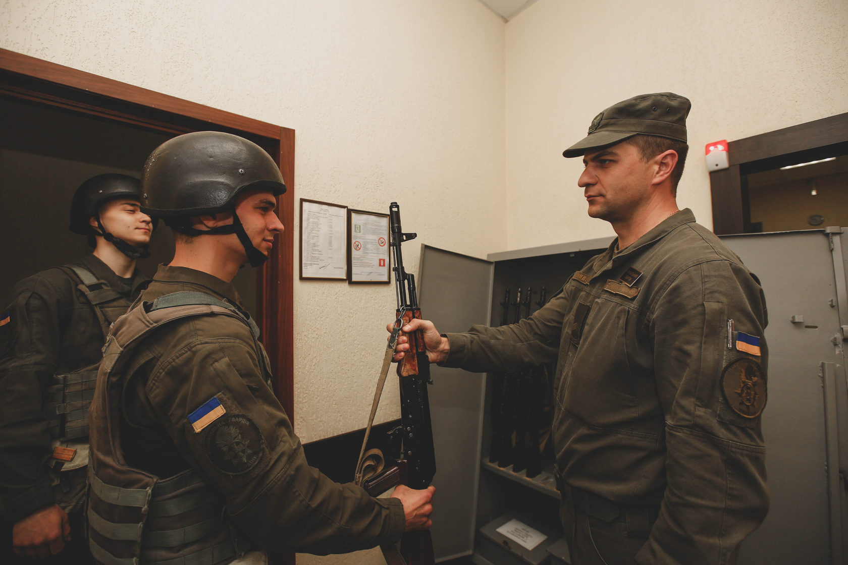 | Солдат роти охорони та комендантської служби Андрій Гур'єв був призваний на строкову службу 9 листопада 2018 року: «Півтора роки пролетіли швидко. Здається, нещодавно був курс первинної військової підготовки, а вже скоро речі в руки і додому», - зізнається Андрій. Андрій проходив службу в роті охорони та комендантської служби, то й обов'язки перед солдатом стояли досить відповідальні. Вартова служба та охорона найнебезпечніших об'єктів, які знаходяться на території Академії Нацгвардії - склад озброєння та сховище зберігання зброї. А ще півтора роки тому він і замислитися не міг про таку діяльність. Хлопець родом із Харкова, тож вирішив проходити строкову службу в Академії Національної гвардії України, щоб бути ближче до дому. На заочному відділенні Харківського національного університету Повітряних Сил ім. І. Кожедуба він опановував професію комп'ютерного інженера, в той час як працював на специфічній роботі, пов'язаній з промисловим альпінізмом. |